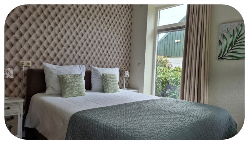 Stap binnen in een sfeervolle en comfortabele plek, waar je meteen tot rust komt. De ruime slaapkamer heeft een tweepersoons queensize Zweedse boxspring, ideaal voor een ontspannen nachtrust. Je komt binnen via je eigen terras, en de openslaande deuren brengen buiten naar binnen, perfect om even op adem te komen.